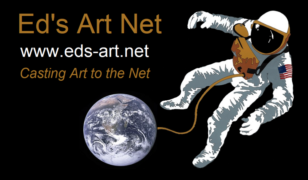 Art is whatever you imagine it to be. For my example, the astronaut is me in my āouter space-likeā endeavor with this website. The umbilical is the internet. The earth is āeveryoneā that visits Edās Art Net. It can be something else entirely for you.