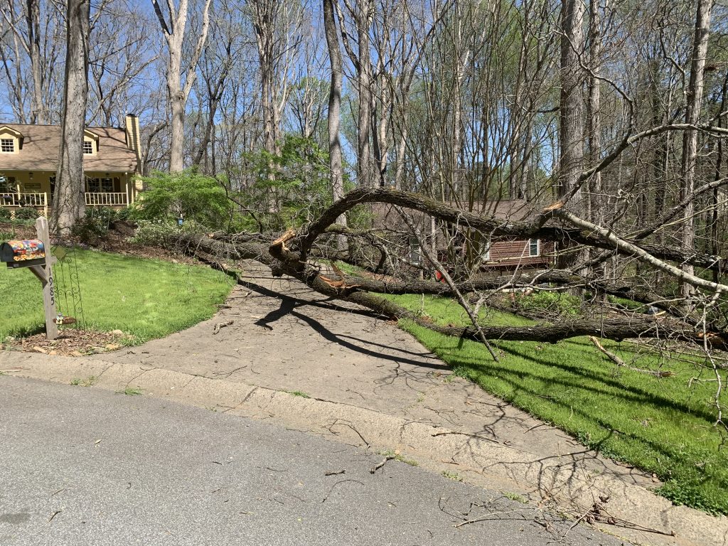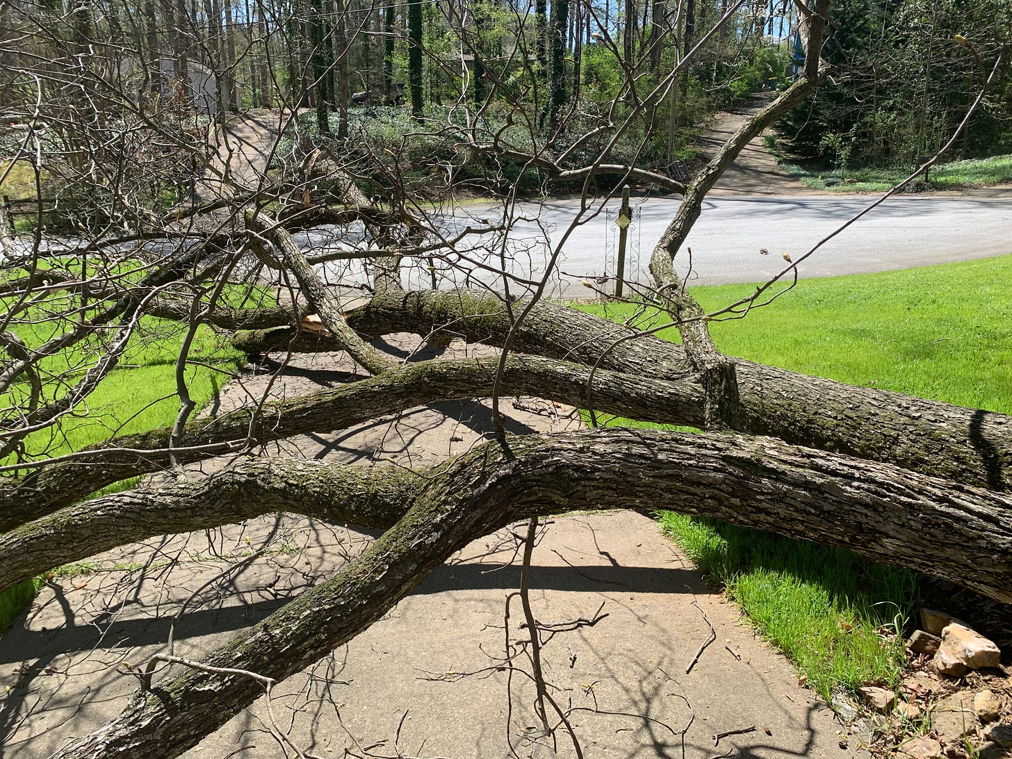 One early spring day I was looking out my upstairs bedroom window admiring the determination of the lone hickory and our beginning to wake up front yard. Just as I was looking, the hickory fell with a few muffled moans and cracks. It landed across my driveway reaching a a few feet into the street. I saw the whole thing. It was as if the tree just gave up with a last gasp from a lifelong struggle to find a place among the towering oaks.