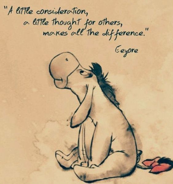 Eeyore’s sentiment well suits my wife’s demeanor.